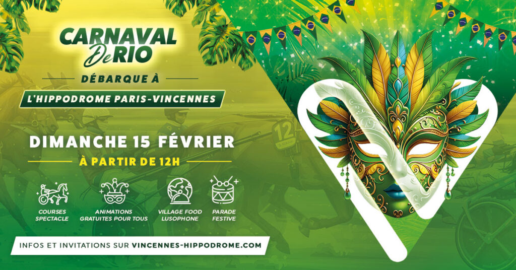 Le Carnaval de Rio débarque à l’Hippodrome de Paris-Vincennes le dimanche 15 février 2026 dès 12h, à l’occasion du Prix Comte Pierre de Montesson.