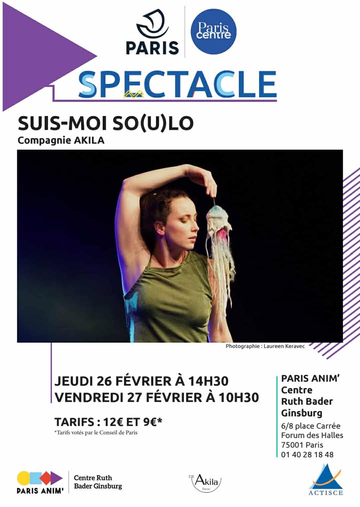 Venez découvrir le spectacle jeune public « Suis-moi So(u)lo » au centre Paris Anim’ des Halles (place Carrée) les 26 et 27 février 2026 ! Un spectacle ludique et poétique pour toute la famille, avec des enfants à partir de 3 ans !